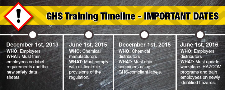 You must start your training right away. OSHA has mandated that employees must be trained by December 1st, 2013. See the timeline below.